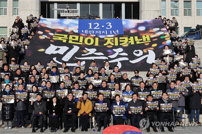 '계엄 1년' 국회 본청 앞에 모인 與…"작은 내란들 계속 준동"(종합)