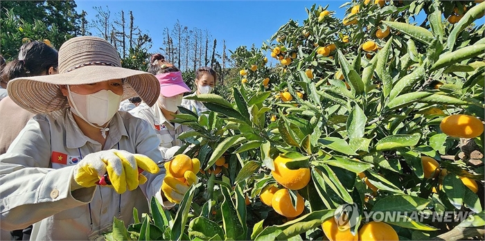 감귤도 양배추도…제주 농촌에 베트남 근로자 해마다 급증 2023년 시범사업 후 올해 6개 농협 참여, 내년 12개 농협 신청 (제주=연합뉴스) 김호천 기자 = 공공형 계절근로사업을 필요로 하는 제주지역 농협이 해마다 2배로 늘면서 제주를 찾는 베트남 근로자들이 매년 급증하고 있다. 16일 농협 제주본부에 따르면 제주