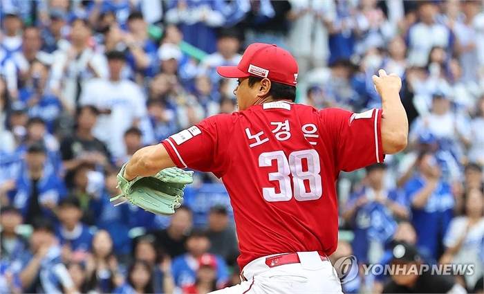 역투하는 SSG 노경은 (인천=연합뉴스) 김인철 기자 = 9일 인천 SSG랜더스필드에서 열린 2025 프로야구 KBO리그 포스트시즌 준플레이오프 1차전 삼성 라이온즈와 SSG 랜더스의 경기. 8회초 교체된 SSG 노경은이 역투하고 있다. 2025.10.9 yatoya@yna.co.kr
