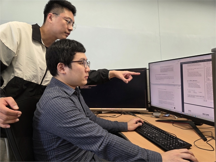 김시호 교수 연구팀 13일 인천 연수구에 위치한 연세대 국제캠퍼스에서 김시호 연세대 인공지능융합대 첨단융합공학부 교수 연구팀이 인공지능(AI) 모델에게 2026년 대학수학능력시험(수능) 문제를 풀게 하고 있다. 최진호 대학원생(석사과정. 왼쪽)과 김진혁 박사[김시호 교수 연구팀 제공. 재판매 및 DB 금지]