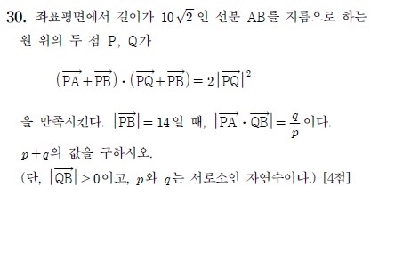 기하 30번 2026학년도 대학수학능력시험(수능) 수학 영역 '기하' 30번 문제 문항. 벡터의 내적·연산에 관한 문제인 기하 30번은 가장 변별력이 있을 것으로 평가받았다. [한국교육과정평가원. 재판매 및 DB 금지]
