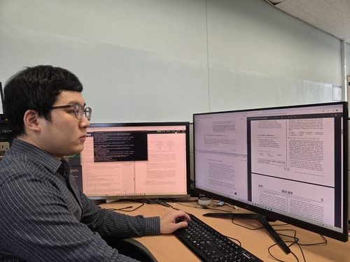 수능 문제 풀고 있는 AI 13일 인천 연수구에 위치한 연세대 국제캠퍼스에서 김시호 연세대 인공지능융합대 첨단융합공학부 교수 연구팀이 인공지능(AI) 모델에게 2026학년도 대학수학능력시험(수능) 문제를 풀게 하고 있다. 책상에 앉아있는 연구팀 소속 김진혁 박사. [김시호 교수 연구팀 제공. 재판매 및 DB 금지]