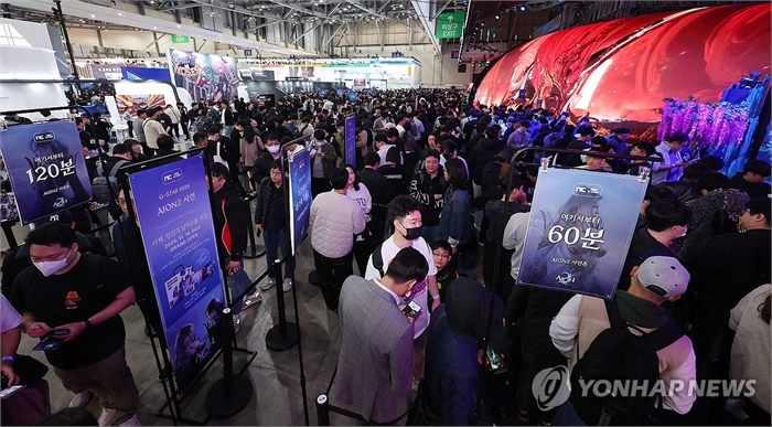 엔씨소프트[036570]의 '아이온2'·'신더시티' 부스, 크래프톤[259960]의 '팰월드 모바일' 부스, 넷마블[251270]의 '나 혼자만 레벨업: KARMA'·'몬길: STAR DIVE' 등 대형 신작 부스에는 전시 시작과 동시에 1∼2시간에서 길게는 4시간 넘는 긴 대기열이 생겼다.