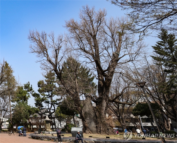 청주 중앙공원 압각수 (청주=연합뉴스) 임헌정 기자 = 1일 충북 청주 상당구 중앙공원의 은행나무 '압각수'. 2025.4.1 kane@yna.co.kr
